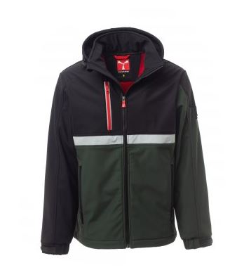 Męski wyściełany soft-shell, zamek błyskawiczny SBS z metalowym suwakiem „semi-autolock” i spersonalizowanym ściągaczem. Odpinany kaptur z regulowanym sznurkiem ściągającym. Przednia opaska odblaskowa na klatce piersiowej. Elastyczne, regulowane na rzepy mankiety i mankiet wewnętrzny. Dwie zapinane na zamek błyskawiczny kieszenie boczne i jedna na piersi zapinana na zamek błyskawiczny z detalami odblaskowymi. Element „life-saving” na plecach, z wewnętrznym logo odblaskowym, zapinany na zamek błyskawiczny. Dwie wewnętrzne kieszenie: jedna profilowana z zamkiem błyskawicznym na prawej piersi i jedna na tablet zapinana na rzep. Oddychająca wewnętrzna podszewka na plecach. Regulowany dół ze spersonalizowanymi stoperami.